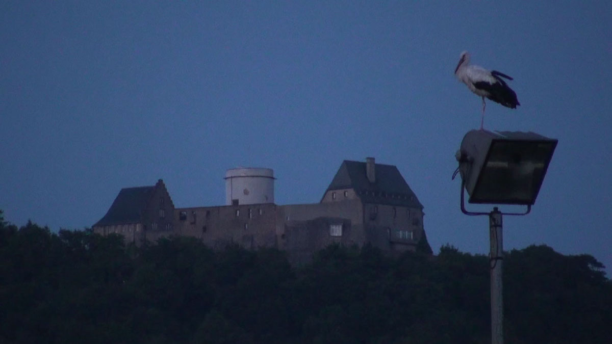 Storch auf Nieder-Klinger Sportplatz Flulichtmast